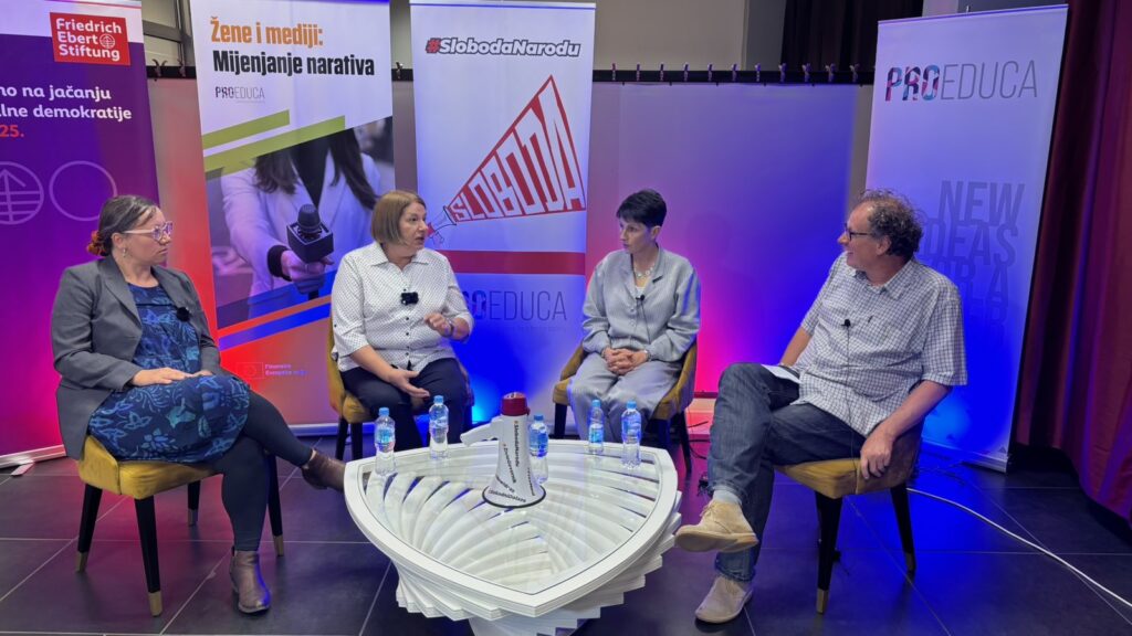 Profesorica Marija Runić s Filološkog fakulteta u Banjoj Luci, Gordana Vidović, direktorica NVO Budućnost iz Modriče, i Branislava Crnčević Čulić iz Agencije za ravnopravnost spolova BiH podijelile su svoja iskustva i izazove.